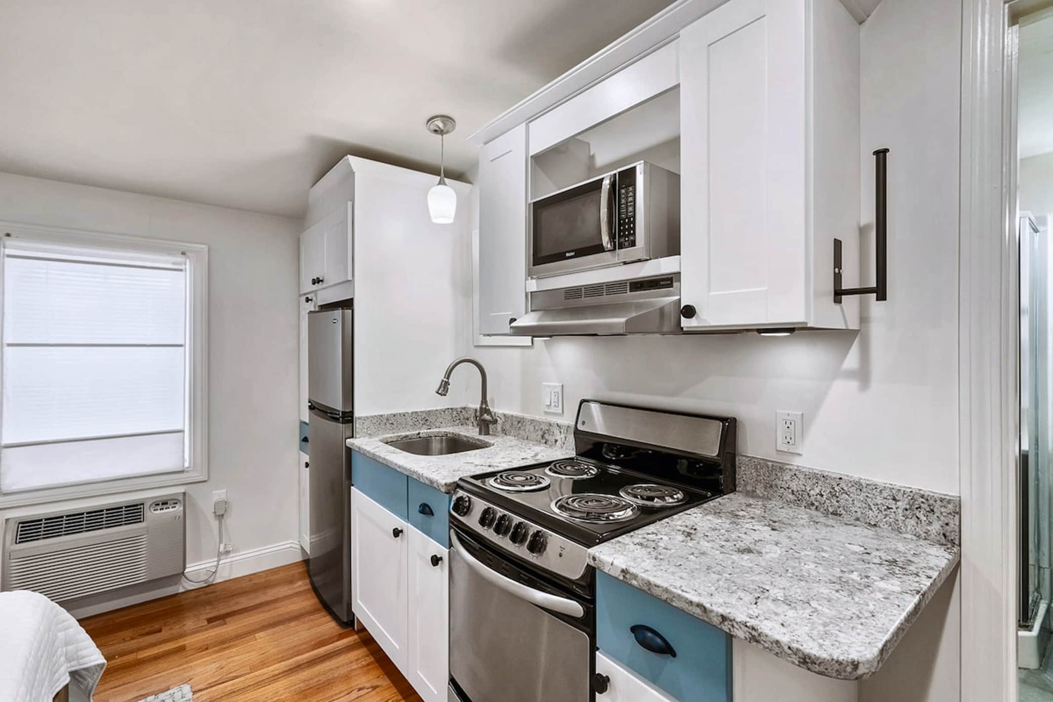 The Drift Suite is a laid-back second-floor retreat at The Hygge House, 11 Charter Street, downtown Newburyport. With coastal-inspired design, a full bed, ensuite bath, kitchenette with refrigerator, microwave, stove, and coffee maker, it's ideal for guests who want to unwind. Walk to the waterfront, restaurants, and shops. No guest laundry. Limited first-come parking.